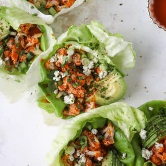 Solving all cravings with buffalo cauliflower lettuce wraps. Oh yes I am! We looooove buffalo wing inspired recipes here. You probably know this!