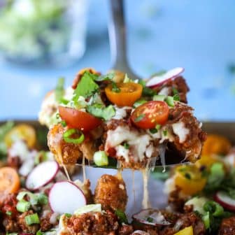 Yes. You read right. I said TOTCHOS. Totchos. Like nachos, but tater tots. And better yet, topped with my favorite, famous sloppy joe recipe....
