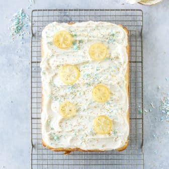Predictably, lemon and I are having a moment. I’ve been lemon-ing all the things. Like chicken and now sheet cake and even chia pudding...