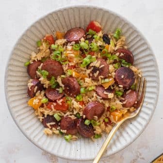 This one pot smoked sausage and rice is super simple and tastes amazing! This dish cooks quickly, uses smoked turkey sausage and fragrant jasmine...