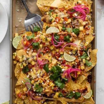 This sheet pan shrimp and vegetables is super easy, delicious and satisfying. Roasted veggies, cheese tortellini, shrimp and lots of lemon, garlic and olive...