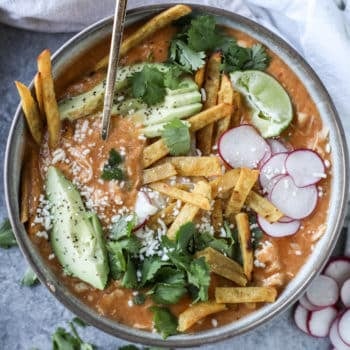 I have THE BEST idea for your leftovers. No. Seriously. The absolute best. It’s warm, cheesy, comforting and topped with homemade chips. Why is...