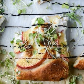 Our pizza is wearing stripes! Only the most delicious, high-end, snobby strips for our pizza with peaches.
