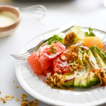 Avocado Citrus Crunch Salad with Oat Croutons and a Buttermilk Drizzle.