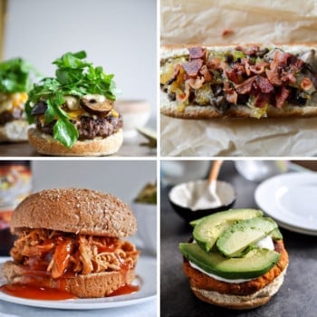 (because calories don’t count on holidays.) mushroom aioli burgers//loaded hot dogs//crockpot beer chicken//sweet potato burgers
