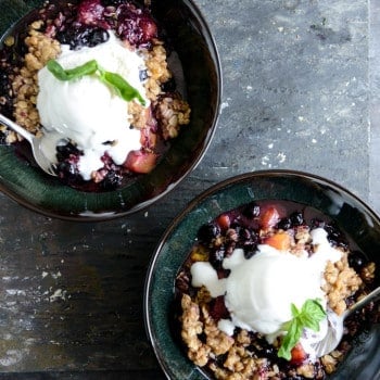 This is how I know it’s officially summer. Warm fruit with a crispy topping and melty vanilla ice cream. And you can bet that...