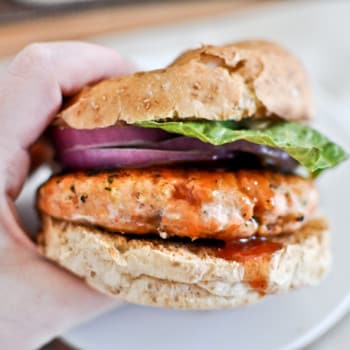 BBQ Salmon Burgers makes 4 burgers 1 pound fresh, raw salmon (skinless or skin removed) 1/3 cup panko...