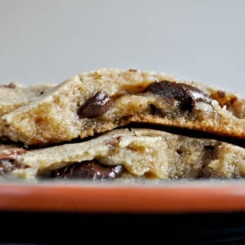 Brown Butter Chocolate-Stuffed Toffee Cookies makes 12 large cookies 1 1/2 sticks (12 tablespoons) of unsalted butter 1...