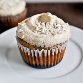 Brownie Banana Bread Cupcakes with Brown Sugar Frosting.