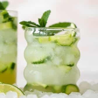 This cucumber tequila soda is wildly refreshing and perfect for summer! Cucumber syrup, fresh lime, mint, tequila and super bubbly soda water make for...