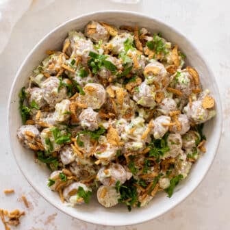 This potato salad with crispy shallots is a favorite summertime side dish! Tender, buttery potatoes in a creamy dressing with celery and dijon. Add...
