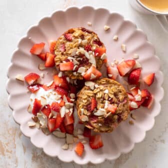 We adore these strawberry oatmeal cups! Hearty, satisfying oatmeal bites filled with fresh strawberries and served with cream or yogurt. The perfect breakfast or...