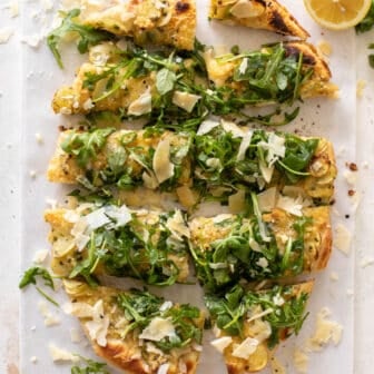 It’s a new favorite! This crispy potato pizza is elevated and delicious. A cast iron skillet pizza is topped with melty gruyere cheese, thinly...