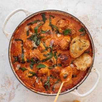Say hello to the most delicious vodka sauce chicken parmesan meatballs! Juicy and tender chicken meatballs are tossed in silky vodka sauce and served...