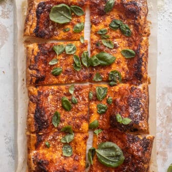 This vodka sauce puff pastry pizza is perfect for an easy weeknight meal. Rich and silky vodka sauce with provolone cheese on a flakey...