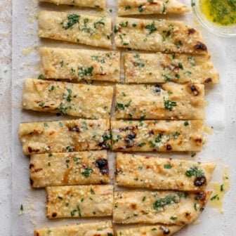 This grilled bread is a favorite of ours. Garlic butter grilled breadsticks are such a hit – like a toasty pizza dough doused in...