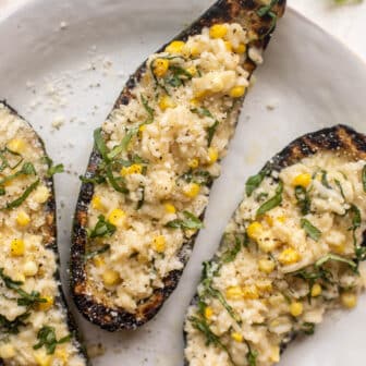 These risotto stuffed grilled zucchini boats are the perfect summer dinner! They feel elegant and fancy and are satisfying and delicious. Charred, grilled zucchini...