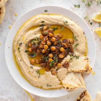 We adore this caramelized onion hummus! Caramelize a few onions and blend them up with chickpeas, lemon, tahini and garlic for the ultimate dip....