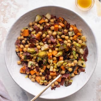 This winter chickpea salad is perfect to make for weekday lunches, or as a side dish with dinner. Smoked provolone, crispy salami, roasted vegetables...