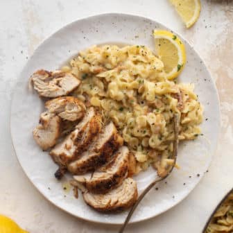 We are obsessed with this chicken with baked lemon pasta! It’s the perfect flavorful, comforting dinner that everyone loves. Add a roasted vegetable on...