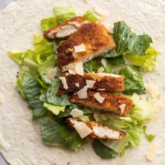 The perfect lunch is here: lemon chicken caesar wraps! These soft tortillas are filled with crispy lemon chicken cutlets, fresh, crunchy romaine lettuce, parmesan...