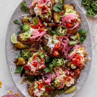 Taco smashed potatoes are a great weeknight meal! Crispy, crunchy smashed potatoes are topped with seasoned taco meat, guacamole, sour cream, cheese and more....