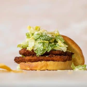 The best meal ever! These crispy chicken caesar sandwiches are such a crowd pleaser. Super thin and crisp chicken cutlets are topped with caesar...