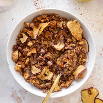 This apple cider granola tastes like fall in a bowl! It’s so crunchy and spiced perfectly, made with oats, apple cider, apple butter, pecans...