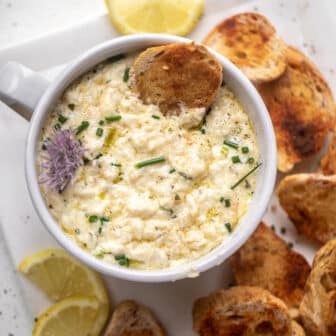 This hot crab dip is super cheesy, flavorful, comforting and perfect for happy hour. Serve with old bay crostini for the perfect spiced crunch!...