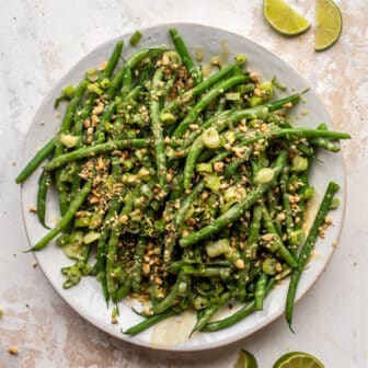 We love this fresh green bean crunch salad! The beans are crisp and refreshing, tossed with scallions and chopped peanuts, then drizzled with a...
