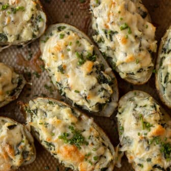 Kale twice baked potatoes are made with sautéed kale, greek yogurt and smoked cheddar for ultimate flavor. Crispy potato skins, melty cheese and kale...