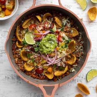 This spinach artichoke skillet lasagna is deliciously comforting and cheesy! Made with shredded chicken and farfalle pasta, it’s super easy, flavorful and huge crowd...