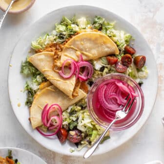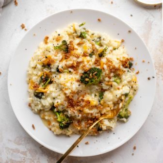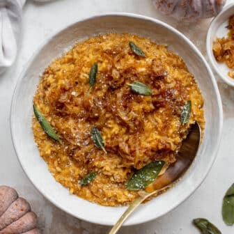 This pumpkin risotto is the perfect comforting fall dish. Creamy and rich, it’s topped with apple cider caramelized onions and crispy sage. Sprinkle on...