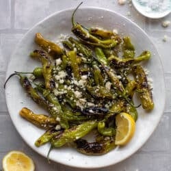 Grilled Shishito Peppers with Lemon.