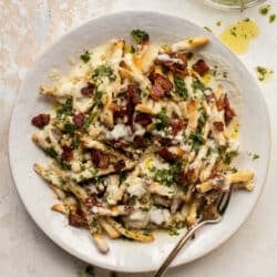 Chimichurri Cheese Fries with Chipotle Bacon.