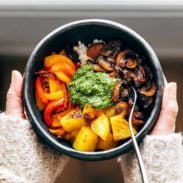 Everything is better piled high in a bowl. Add some bell peppers in there and, my oh my, what a beautiful sight!
