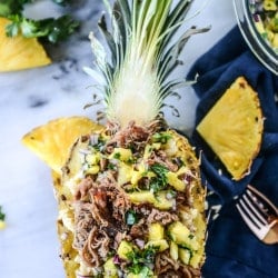 Slow Cooker Jerk Pork in Pineapple Rice Bowls.