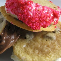 Bite Size Chocolate Chip Cookie Ice Cream Sandwiches.