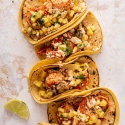 Chili Lime Shrimp Tacos with Mango Salsa.