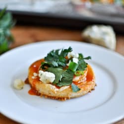 Mini Buffalo Shrimp Puff Pastry Pizzas.