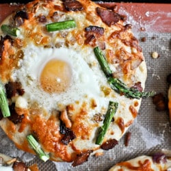 Springtime Portobello, Asparagus + Prosciutto Pizza with Balsamic Glaze.