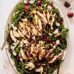 Grilled Chicken Cherry Kale Salad with Rosé Vinaigrette.