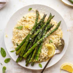 Asiago Lemon Risotto with Grilled Garlic Asparagus.