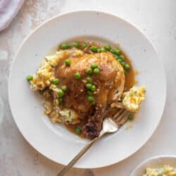 Spring Smothered Chicken with Herb Smashed Potatoes.