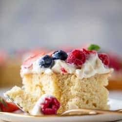 Triple Berry Vanilla Sheet Cake with Cream Cheese Frosting.