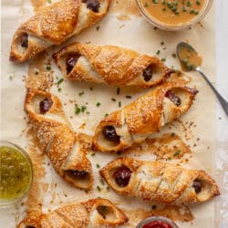 Puff Pastry Hot Dogs with Hot Honey Mustard.
