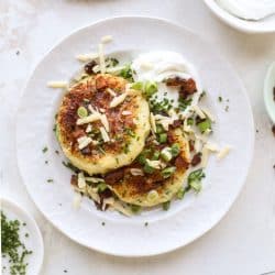 Loaded Irish Cheddar Mashed Potato Pancakes.