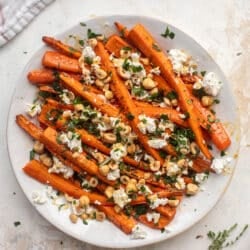 Maple Roasted Carrots with Hazelnuts & Goat Cheese.