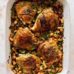 Thanksgiving Chicken and Stuffing Bake with Easy Gravy.