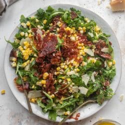 Crispy Prosciutto and Charred Corn Arugula Salad.